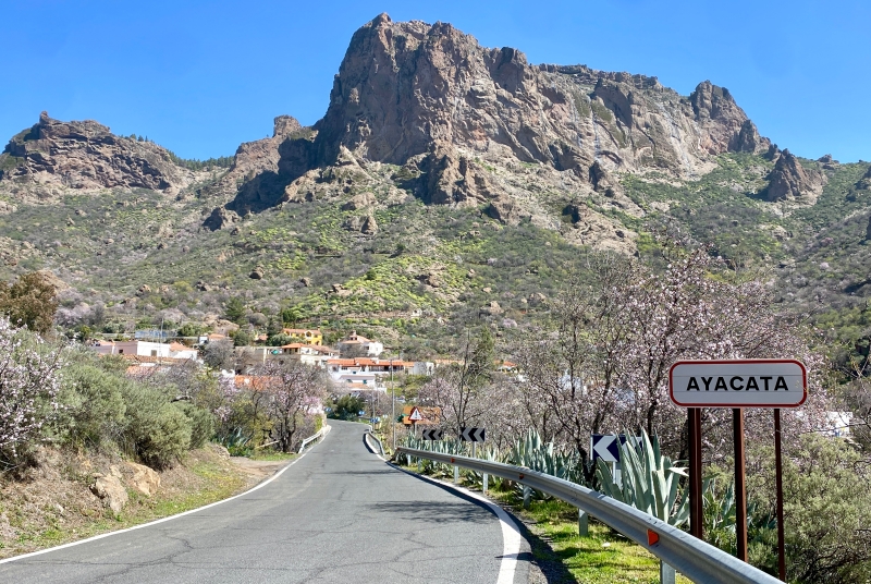 After a relaxing rest day, it was time to climb again. We started early going from Maspalomas, by the coast and turning in to the Soria valley with it’s steady gentle gradient. A quick coffee stop and straight to climbing up to Soria. A twisty road with challenging inclines of around 8%. Once you are at the top you can stop in the small village or carry on climbing to Tauro Pas. Here is when you need the bottom gear and strong legs, the road will just go steep and gravelly for around 4 km, the hardest part is not knowing how long, you must suffer for. Luckily, I have survived and from there the climbing got easier, I could relax and start enjoying the views. In the February you can see blossom everywhere, in contrast with dry red rocky mountains, it does look stunning. The mountains have been busy at the weekend, so when we arrived to the Ayacata village at the top, it was hard to find a free table. We managed to find a quiet old-fashioned place and rest. There was only a little climbing left on the way home. This was one of the hardest days on the bike I have experienced, but you feed proud and satisfied after is done.